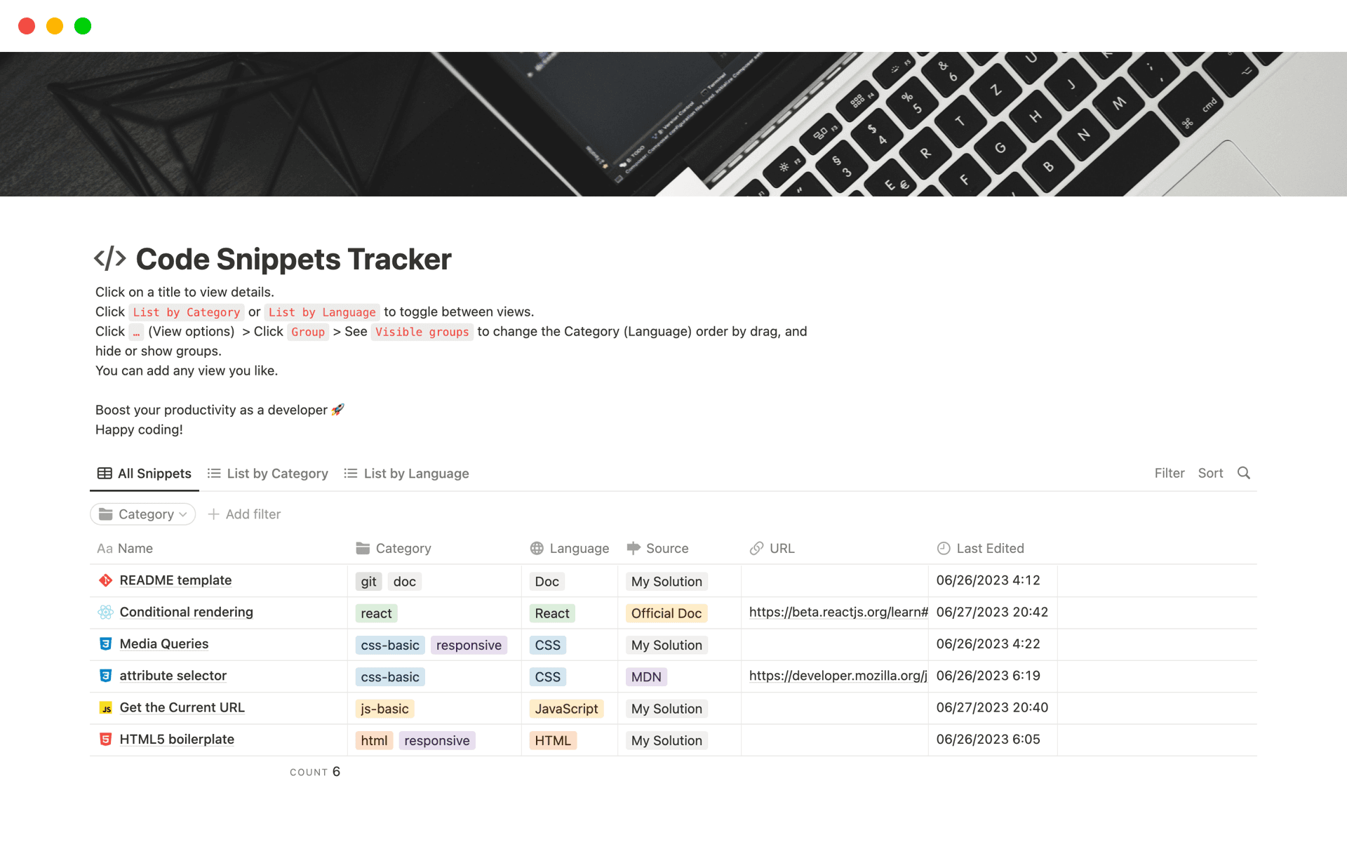 Useful examples, all in one page. The buttons are sweet. If the "Archive week" button could also move my contents from this week down, that would be 5-star!